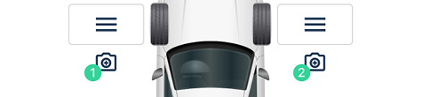 Hinweis: Sie können die Position des Buttons verändern, je nachdem, ob Sie das Fahrzeug von der Vorderseite, der Rückseite oder von beiden Seiten aus fotografieren möchten. Weitere Informationen hierzu finden Sie unter „ID erzeugen, wenn leer“ in den Einstellungen.