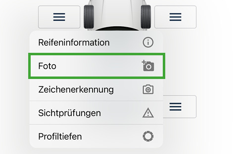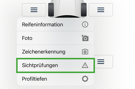 Mit der Funktion „Sichtprüfungen“ dokumentieren Sie Reifen- und Felgenbeschädigungen.