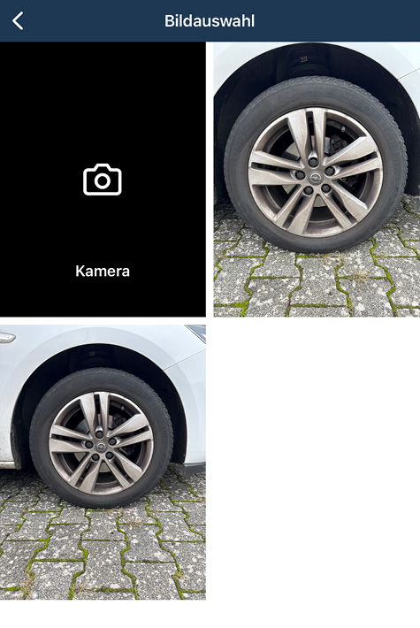 Falls für den Reifen bereits ein oder mehrere Reifenbilder existieren, können Sie auswählen, ob Sie dieses verwenden oder mit der Kamera ein neues Foto aufnehmen möchten.
