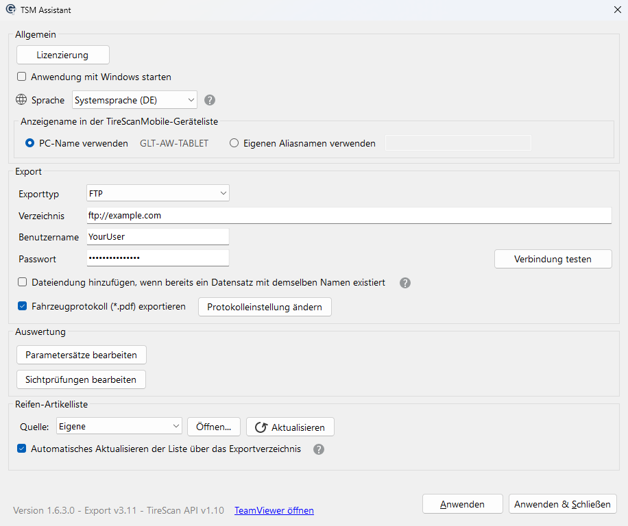 1.4. Optional: Tire Scan Mobile Assistant einrichten und anpassen