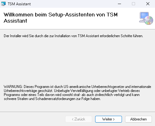 Es erscheint ein Installationsassistent. Klicken Sie auf „Weiter“.