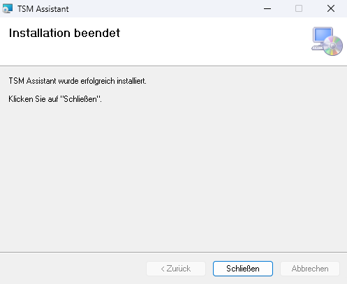 Die Installation erfolgt in mehreren Schritten. Klicken Sie jeweils auf „Weiter“, bis die Installation beendet ist. Klicken Sie abschließend auf „Schließen“.