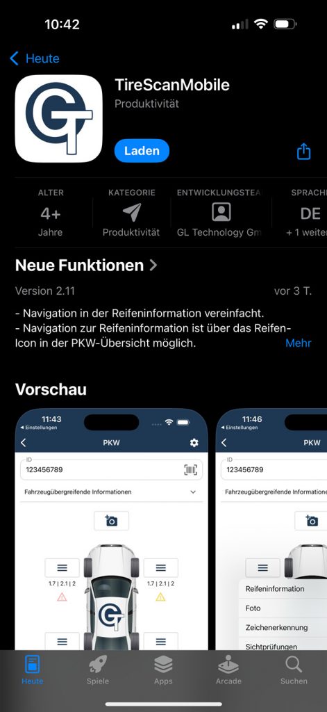 1.1. Tire Scan Mobile unter iOS (Apple / iPhone) installieren